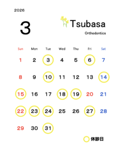 3月の診療日カレンダーです。